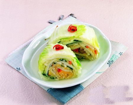 做法:1、洗净白菜,起锅将水煮开,将白菜片放入锅中烫软即可。将金针菇、香菇放入水中烫熟后取出切成细丝。