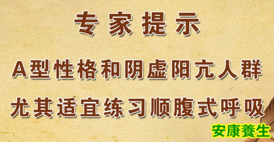 有研究发现,A型性格的人总是处于紧张状态,容易患高血压、脑血管病等疾病,应该学会放松,消除紧张状态。顺腹式呼吸有助于缓解紧张的情绪,普遍适于所有人群。